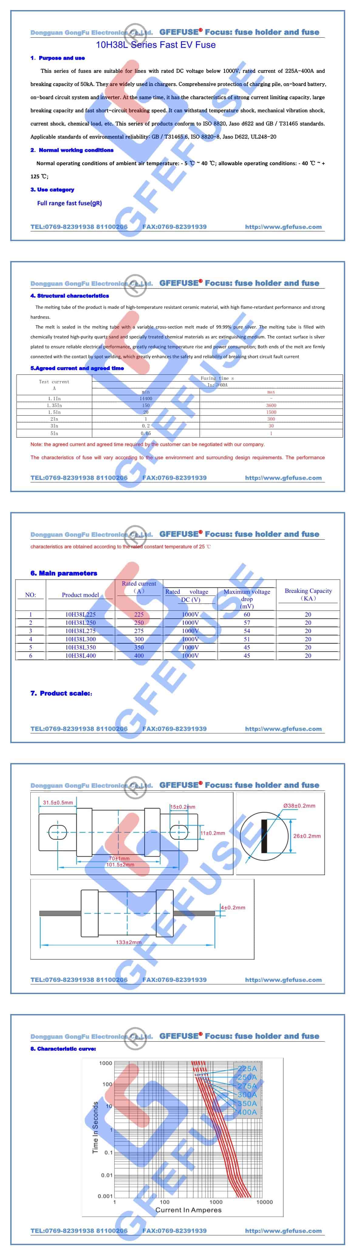 10H38L快速直流熔斷器(225A-400A)1000V