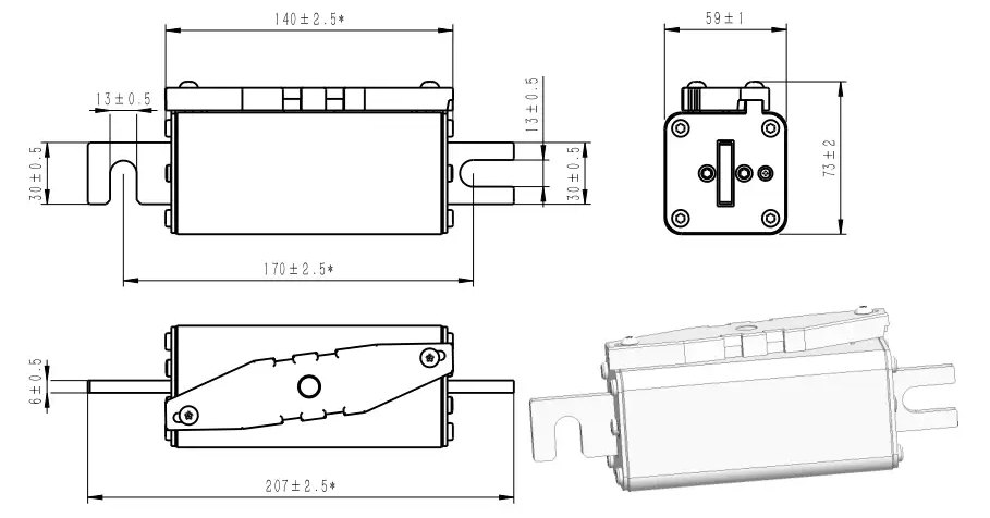 GFEVT1500-59E 高速熔斷器 100A-400A 1500Vdc